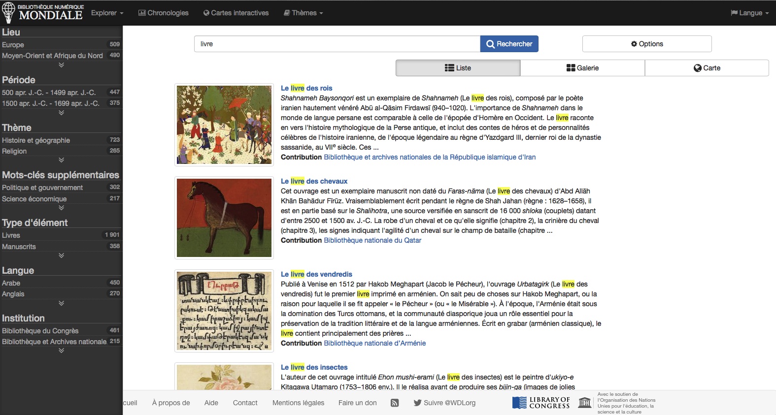 Rendez-vous sur la bibliothèque numérique mondiale pour votre premier test 🙂