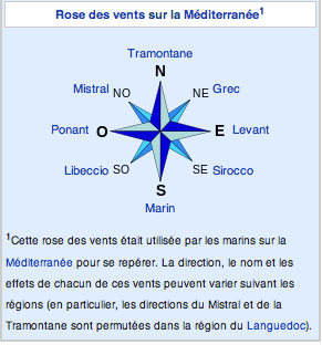 Pour mieux comprendre, il existe une rose des vents, comme celle-ci :